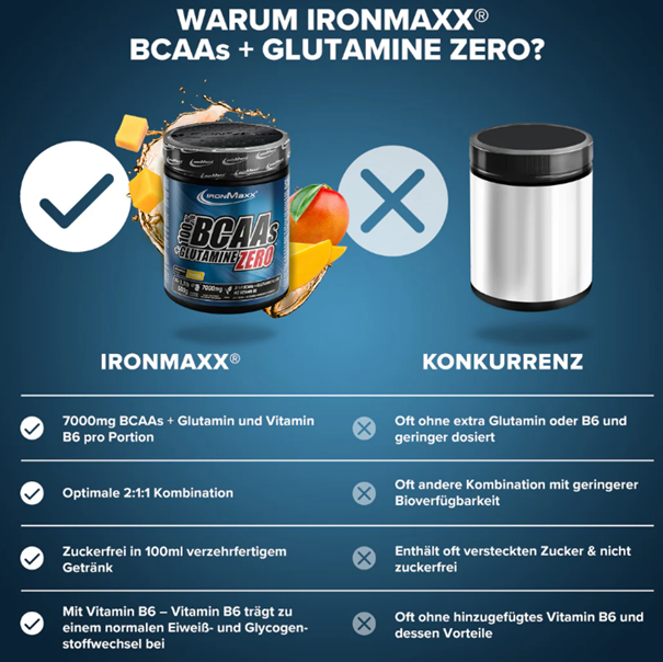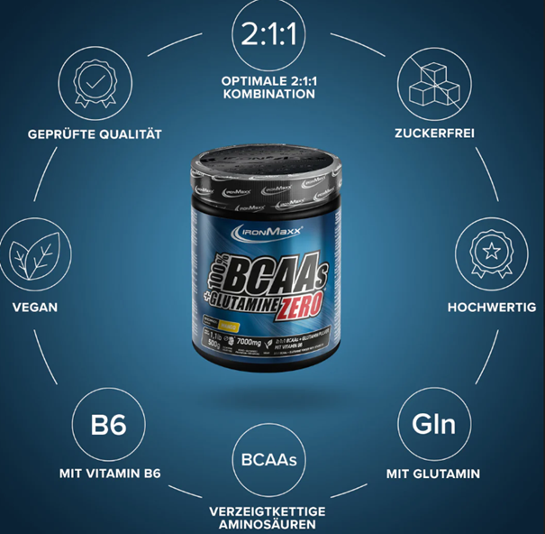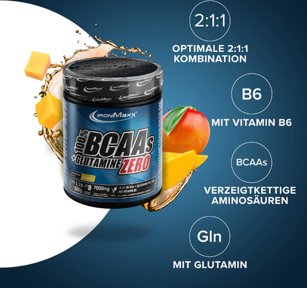 100% BCAAs + Glutamine Pulver Zero 500g – IronMaxx®