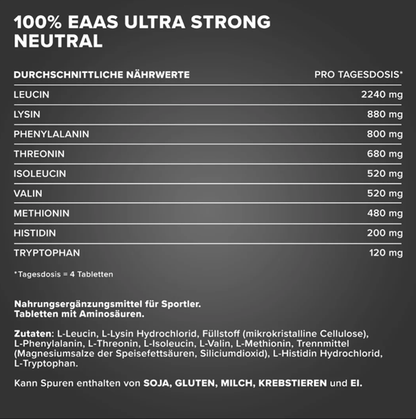 A 100% EAAS Ultra Strong tabletta – IronMaxx®g napi adagja: 4 tabletta