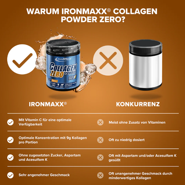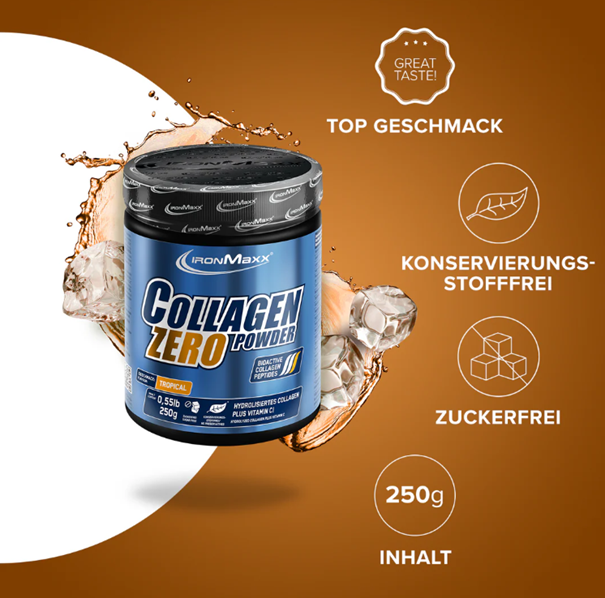 Collagen Powder Zero 250g IronMaxx® cukormentes és tartósítószer mentes.