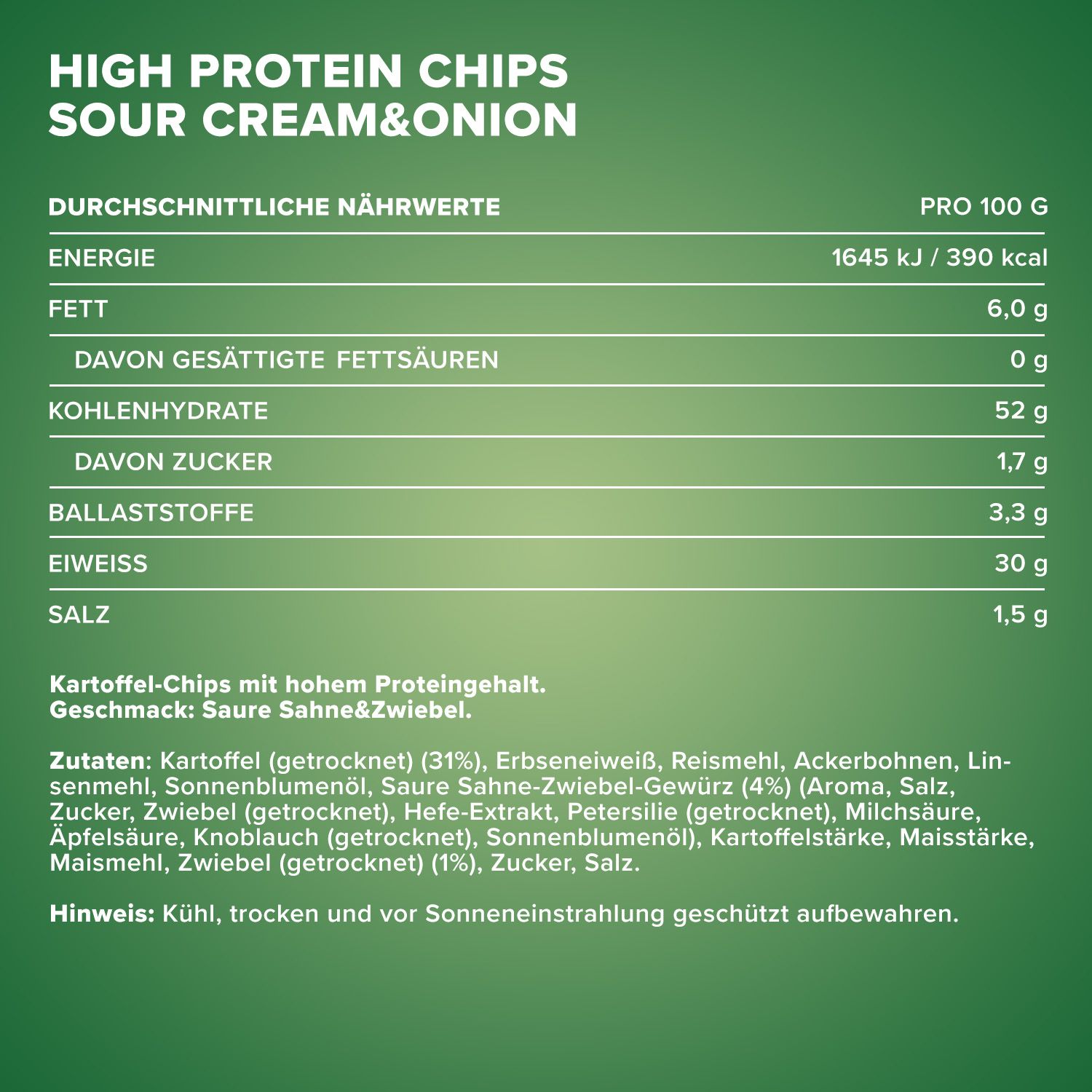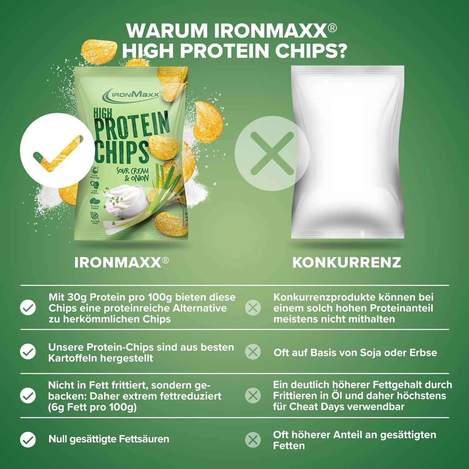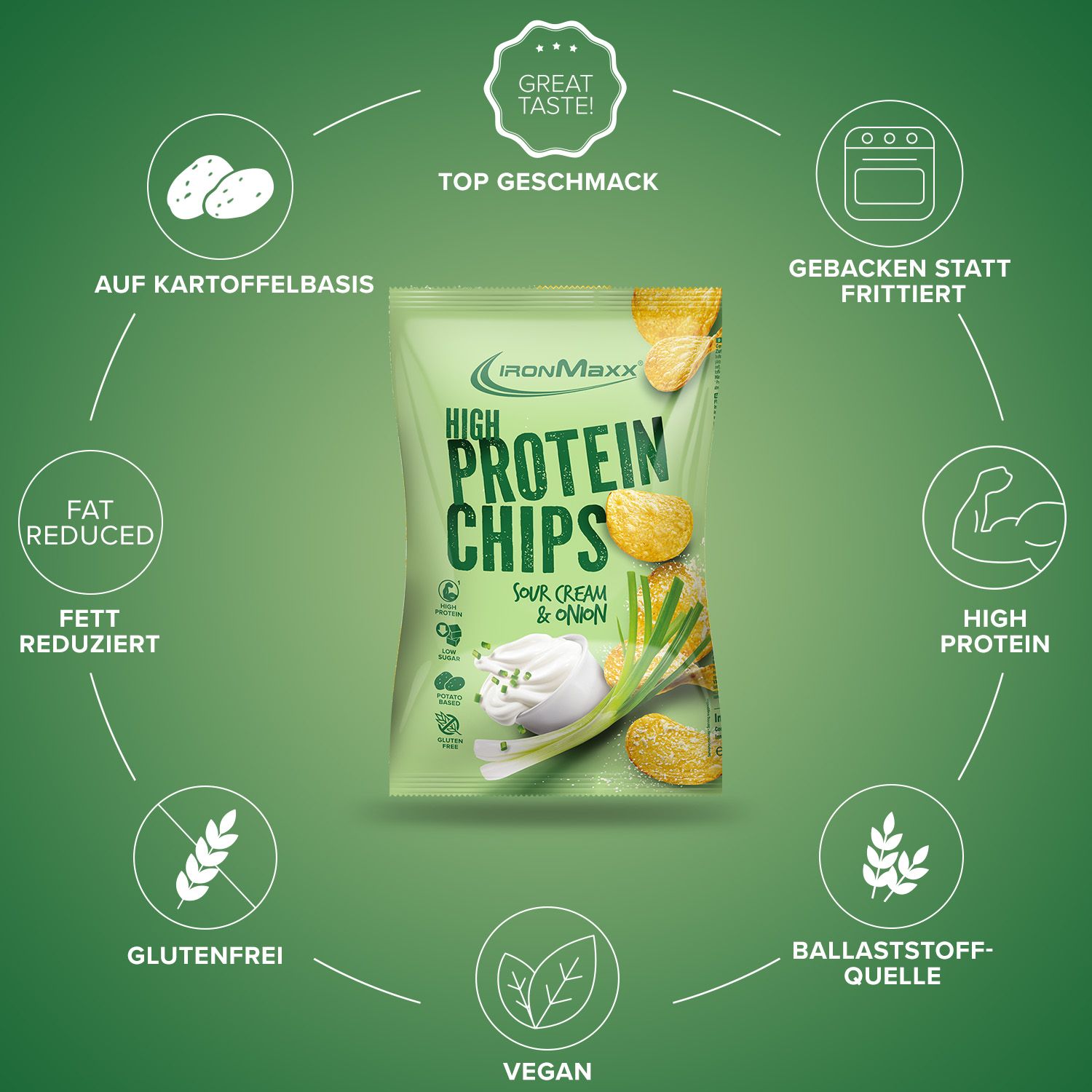A High Protein Potato Chips 50g – IronMaxx® ideális nassolnivaló mindazok számára, akik értékelik a fehérjében gazdag és egészséges étrendet. Természetes összetevőkből, például burgonyából, borsófehérjéből és rizslisztből készültek. A High Protein Potato Chips 50g – IronMaxx® finom és tápanyagban gazdag alternatívát kínálnak a hagyományos nassolnivalókkal szemben. Magas, 30 g/100 g fehérjetartalmukkal támogatják az izomépítést és tartós energiát biztosítanak. Ugyanakkor alacsony cukortartalmúak, gluténmentesek, és mindössze 6 g zsírt tartalmaznak, így egészséges választást jelentenek egy kis nassolnivalónak.