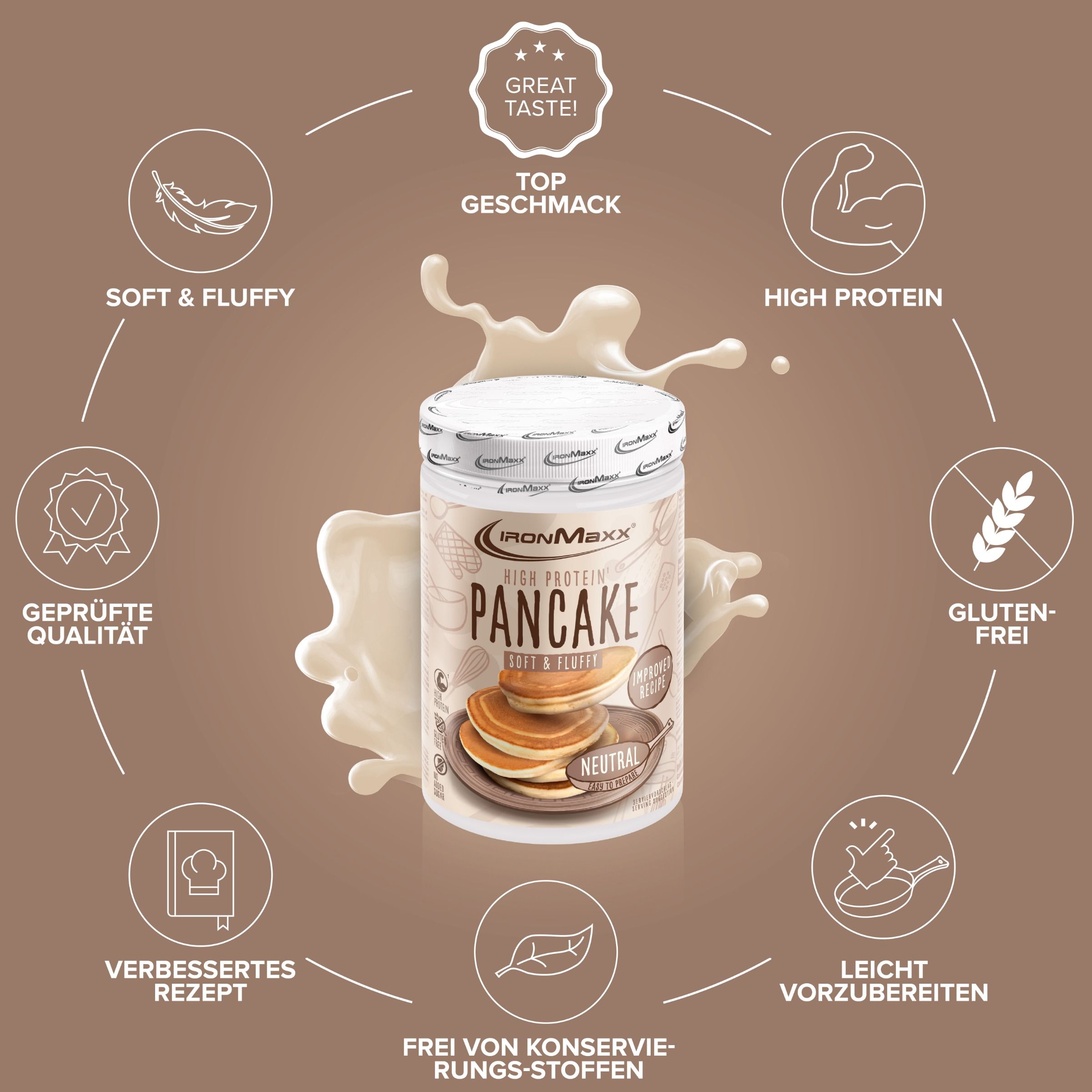 Szeretnéd megjutalmazni magad egy igazán finom reggelivel, de a következő csalónapod még messze van? Akkor ez pont neked való! A Protein Pancake 450 g Doboz – IronMaxx® nemcsak a hagyományos cukorbombák tökéletes alternatívája, hanem ideális szénhidrát- és fehérjeforrás is reggelente. A fehérje hozzájárul az izomtömeg fenntartásához és növekedéséhez.
